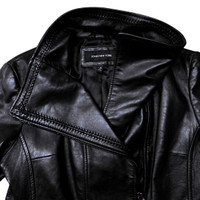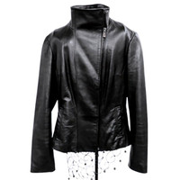 JONES NEW YORK Ladies Black Leather Biker Jacket Size M
