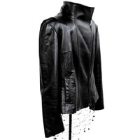 Jones New York Ladies Black Leather Biker Jacket features: •Top-stitched seam accents •Razer edge top stitched seams surround stand-up collar •Vertical front pockets •Asymmetrical front zipper close •Jacket is completely lined. Size M •Shoulders: 16” •Chest: 18.5” •Waist: 17” •Sleeve: 24” •Length: 22.5” – taken down back center Jacket is pre-owned in very good condition. *Measurements are provided as a courtesy and not guarantee of fit.