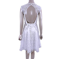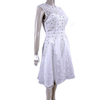 Show off your classy side when you wear Sue Wong's Fit and Flare white embellished dress. This creation has a illusion yoke upper chest with jewel neckline that is paired with a floral lace overlay for feminine elegance and cut-out keyhole design at the back. Short and sassy dress by Sue Wong definitely parades the fashionable classy style that she is known for. Additional features beautifying this design: •Beaded, embroidered accents with silver rhinestone embellishment •Side zipper close •Cap Sleeves •Padded bust •Size 6 •Model #N5212 •NWT - Old Stock •100% Polyester and fully lined. •Product Care: Spot Clean Only