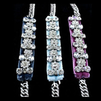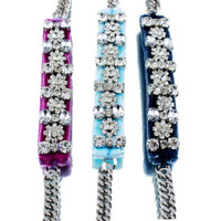 From Milano, Italy these delightful bracelets add bold bling and fun to your wrist. Embellished with chunky floret and round rhinestones, velvet bands are finished with silver-tone metal chain link and lobster clasp close. Signature logo silver plate on the back of each. Length: 8.25" Width: .5" Velvet portion: 3.5" Color for this listing: "Purple" Brand New with Tags. Sold Separately. Add all 3 to your bundle and receive 10% off order.