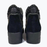 •Black velvet and sequin accents blend into a rich textile leopard printed canvas in signature fashionista style. •Model/Article: “Minne” 200B •Size 41 •Hidden Wedge: approximately 3” •Black rubber soles •Signature R logo applique displays on each exterior side in glittering black sequins. •Made in Italy •Ship with original box and keeper bags Pre-Owned in Excellent Condition. *Regarding Fit: Sneakers run small and are best suited for a US 10