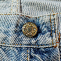 Fit 34. Made in USA. Stamp button 524. Small e. Condition : vintage item in good condition. Yellowish spot at thigh but no significant, tag missing. MANUAL INCH MEASURE IN LAID FLAT (also provided in photos). Waist - 17’ Front Rise - 12’ Thigh - 12’ Leg Opening - 9.5’ Inseam - 12’ Outseam - 22’ Shipped using DHL express shipping for arrive quickly & safely. Any query do message me. Thank you. CODE : A155