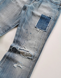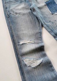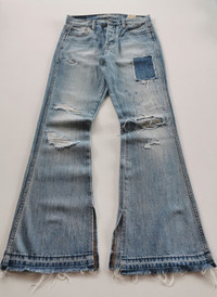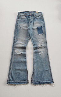 Size 28. Vintage hi-rise flare fit. Patchwork distressed detailed. Open leg design. Condition : used item in good condition. MANUAL INCH MEASURE IN LAID FLAT (also provided in photos). Waist - 14β Front Rise - 9β Thigh - 10β Knee - 7β Leg Opening - 10β Inseam - 30.5β Outseam - 38.5β Shipped using DHL express shipping for arrive quickly & safely. Any query do message me. Thank you. CODE : A216