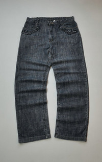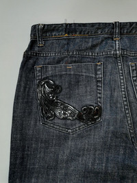Size 34. Embellish back pocket. Stretchable fabric. Pants are in good pre-owned condition. INCH MEASUREMENTS IN LAID FLAT (also provided in photos). Waist - 17’ Front Rise - 11’ Thigh - 12’ Knee - 10’ Leg Opening - 9’ Inseam - 30.5’ Outseam - 41’ Shipped using DHL express shipping for arrive quickly & safely. CODE : A138