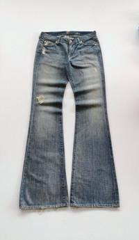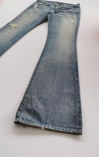 Made in USA. Manual size 29. Flare fit. Condition : used item in good condition. Yellowish spot at back pocket/thigh but not significant. MANUAL INCH MEASURE IN LAID FLAT (also provided in photos). Waist - 14.5β Front Rise - 8β Thigh - 10β Knee - 7β Leg Opening - 10β Inseam - 35β Outseam - 43.5β Any query do message me. Thank you. CODE : A215