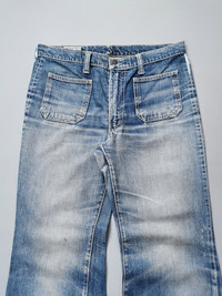 Talon zipper. Manual waist 32’. Patch pockets. Vintage item in good condition. Done repairation at crotch & a little bit yellowish dots at thigh. MANUAL INCH MEASURE IN LAID FLAT (also provided in photos). Waist - 16’ Front Rise - 10.5’ Thigh - 11’ Knee - 9’ Leg Opening - 11’ Inseam - 28’ Outseam - 38’ Shipped using DHL express shipping for arrive quickly & safely. Any query do message me. Thank you. CODE : A161