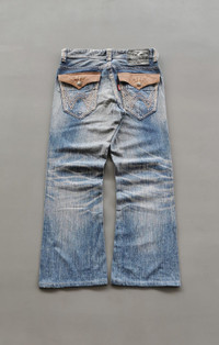 Manual waist 33’. Made in Japan. Faux leather pockets. Item are in good pre-owned condition. Flat measurements in inches (photos provided) Waist - 16.5’ Front Rise - 10.5’ Thigh - 11.5’ Knee - 9’ Leg Opening - 9.5’ Inseam - 29.5’ Outseam - 40’ Fast & secure DHL express shipping. Examine the photos for more details. Follow my shop to check daily updates & price drops. Thanks! CODE : A306