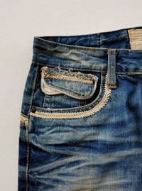 Size 32. Flap/zipper back pockets. Faded designs. Used in good condition (see photos). ACTUAL INCH MEASUREMENTS IN LAID FLAT (also provided in photos). Waist - 16’ Front Rise - 9.5’ Thigh - 11.5’ Knee - 8.5’ Leg Opening - 8’ Inseam - 34’ Outseam - 42.5’ Inspect photos/description for defects (if any) & manual measurements (inches). All sales are final - no returns/refunds. DHL Express shipping (fast & secure). Messages me with any questions. Thanks! CODE : A277