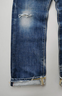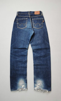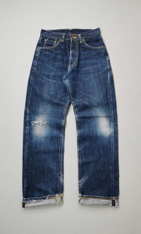 Made in Japan. Size W25 L29 on tag, manual 26 waist. Chain stitch. Red line Selvedge. Vintage item are in good condition. A little bit scratch suitable for vintage age. INCH MEASUREMENTS IN LAID FLAT (also provided in photos). Waist - 13’ Front Rise - 11’ Thigh - 10.5’ Knee - 8.5’ Leg Opening - 7.5’ Inseam - 29’ Outseam - 39’ Shipped using DHL express shipping for arrive quickly & safely. CODE : A129