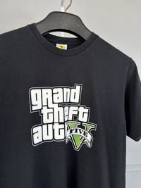 Rockstar Games tag. Made in USA. Size M. GTA V logo. Color black. Authentic merchandise. Condition : good used condition. No defects. Still in good. MANUAL INCH MEASURE IN LAID FLAT (also provided in photos). Chest : 19’ Length : 28.5’ Shipped ASAP using express shipping for arrive quickly & safely. Any query do message me. Thank you.