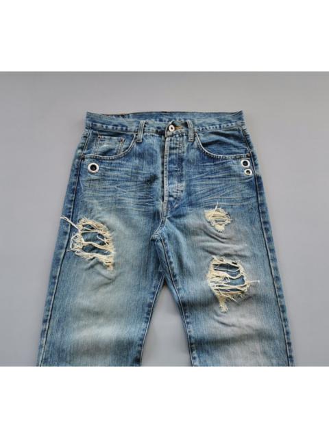 Japanese Brand - Unbrand Double Waist Faded Designs denim Jeans