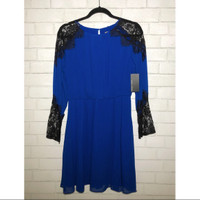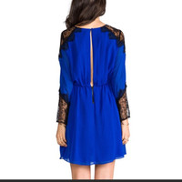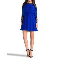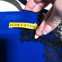 Alice + Olivia Blue Silk + Lace Detail Dress