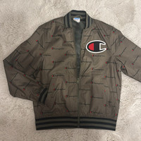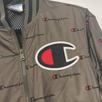 Champion Olive Green Big C Logo Print Bomber Varsity Jacket