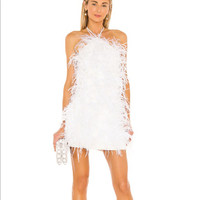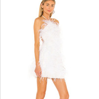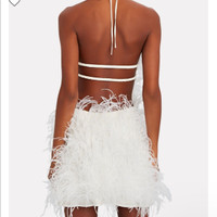 ✨ Brand New - Purchased for my wedding. 💕 Usually Sold Out + Never Discounted 💌 Fast Shipping to PM HQ for authenticity check 📏 Laying Flat Chest 16” (elastic back) Waist 14” (elastic back) Hips 20” Length 31” With her sultry mini silhouette, halter neckline and wispy feather accoutrements, Valé is bold and attention-grabbing. Architectural lines grace this show-stopping Off White number, while the leg-bearing shape brings a sensation of provocative elegance. She’s the perfect dress to accompany you to summer’s best events. From weddings, to international holidays, to gatherings with friends, Valé was made for anything that calls for a celebration. *Please note I purchased this from someone who listed it as brand new with tags, upon arrival the item does have some minor staining on the interior and on the halter ties. I have not tried to clean it or have it cleaned in order to keep the tags attached. 💰PRICE IS FIRM - NO OFFERS