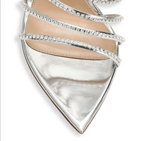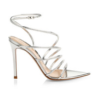 Gianvito Rossi Chantel Embellished Silver Strappy Pointed Toe Sandals