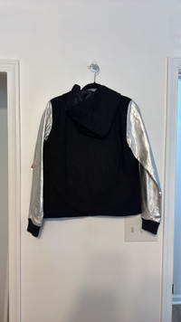 Nike Destroyer Metallic Silver Asymmetrical Varsity Jacket with Butterfly Back