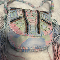 ✨ Free People Under the Rainbow Pastel Fringe Boho Leather Crossbody Bag