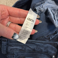 ASOS Lisbon Skinny Mid Rise Jeans in Overdyed Blue with Busted Knees W30 L30
