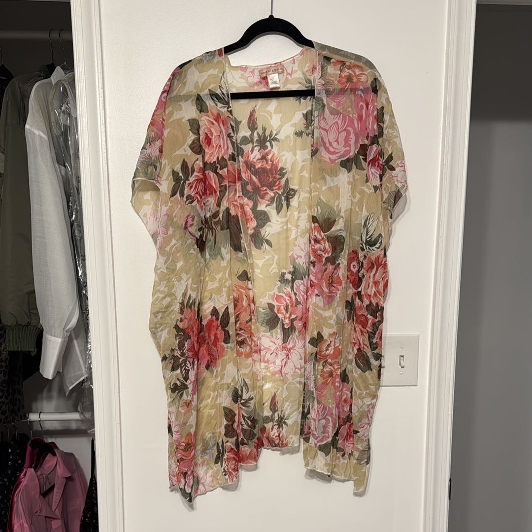 Band of Gypsies Bright Pink Floral Kimono Cover-Up
