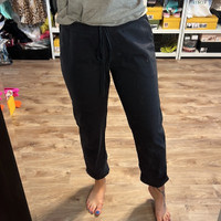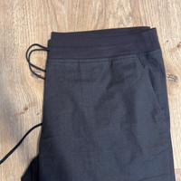 BCBGMaxAzria - BCBG Navy Blue Linen Drawstring Straight Leg Ankle Length Pants