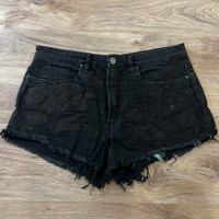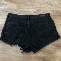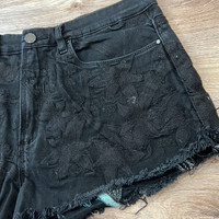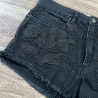 Blank NYC Black Embroidered Floral Raw Hem Distressed Denim Shorts