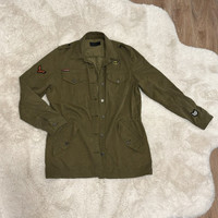 Blank NYC Olive Military Style Utility Jacket with Patches
