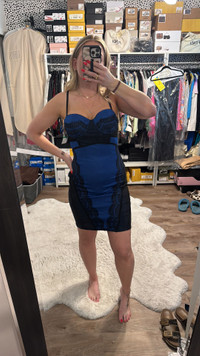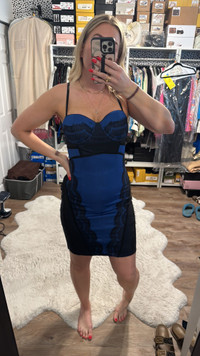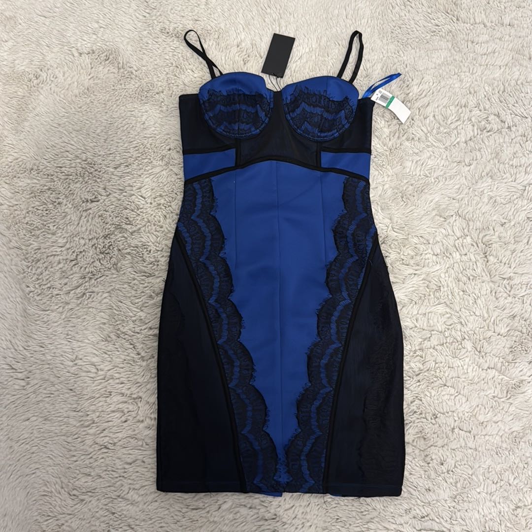 Blaque Label Bright Blue Eyelash Lace Trim Corset Bodycon Dress