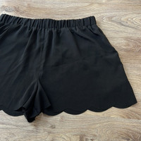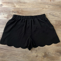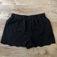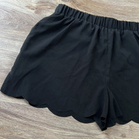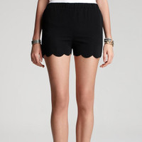 Bloomingdales Aqua Black Scalloped Hem Elastic Waist Shorts