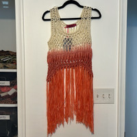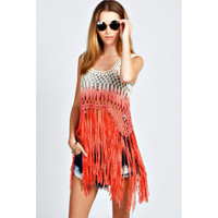 Boohoo Dip Dye Crochet Tassel Knit Cover-Up Festival Top