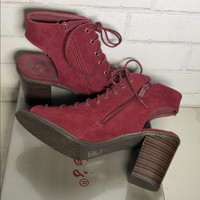 Breckelles - Breckelle’s Tyler-11 Lace-Up Ankle Bootie in Wine