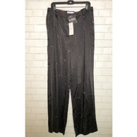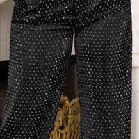 Club L London Adorned Black Rhinestone Diamanté Satin Wide Leg Pants