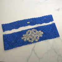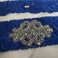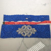 ✨ Never Used 🧾 Purchased from well reviewed Etsy Seller 💌 Fast Shipping A perfect compliment to carry out the 'Something Blue' tradition! The Rhinestone Crest features high-quality CRYSTAL pointed back rhinestones that give off a diamond-esk sparkle! The lace is very soft, stretchable, comfortable to wear and showcases an elegant flower pattern.