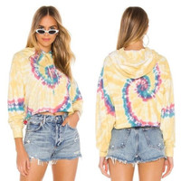 Daydreamer x REVOLVE Yellow Tie Dye Multi Colored Cropped Hoodie