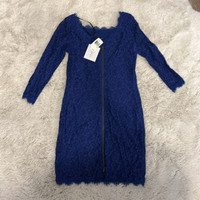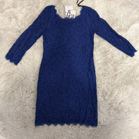 Diane Von Furstenberg - DVF Zarita Blue Lace 3/4 Sleeve Zip Back Dress