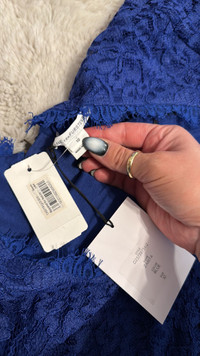 DVF Zarita Blue Lace 3/4 Sleeve Zip Back Dress β¨ Brand New π Fast Shipping π Approx Laying Flat Chest 18β Waist 15 1/2β Hips 18β Length 36β Size 10 Retail $325