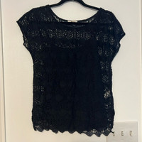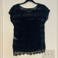 Ella Moss Black Jasmine Lace Top Eyelet Crochet Top + Cami Set