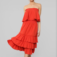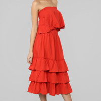Fashion Nova Red Señorita Ruffled Skirt Set