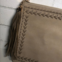Faux Leather Crossbody Bag with Tassel