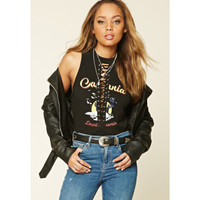 Forever 21 California Graphic Lace-Up Festival Bodysuit