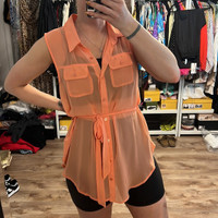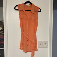 Forever 21 Chiffon Style Belted Button-down Sleeveless Top