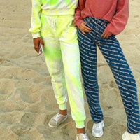 Forever 21 - Neon Yellow + Green Tie Dye Jogger Sweatpants