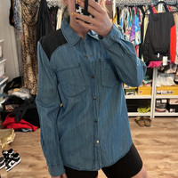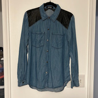Forever 21 Quilted Leather Detail Chambray Denim Button Down Top