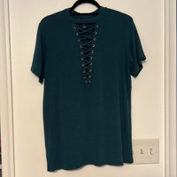 Forever 21 Teal Ladder Front Lace-Up T-Shirt