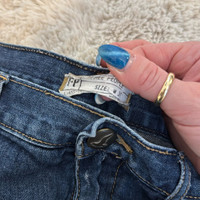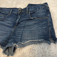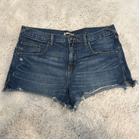 Free People Dark Wash Raw Hem Distressed Denim Shorts
