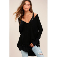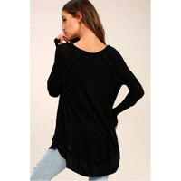 Free People We The Free Laguna Black Thermal Long Sleeve Tunic Top