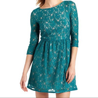French Connection Lizzie Teal Lace 3/4 Sleeve Dress
