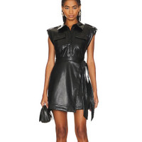 Jonathan Simkhai - SIMKHAI Lourdes Faux Leather Wrap Dress in Black