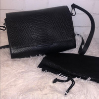 Kendall & Kylie Black Bobino Snake Python Croc Embossed Leather Shoulder Bag