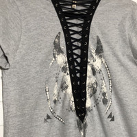 LF Emma & Sam Western Boho Lace-Up Graphic Tee
