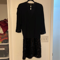 Marc Bouwer GlamIt! Black Sequin Embellished Blouson Dolman Sleeve Dress